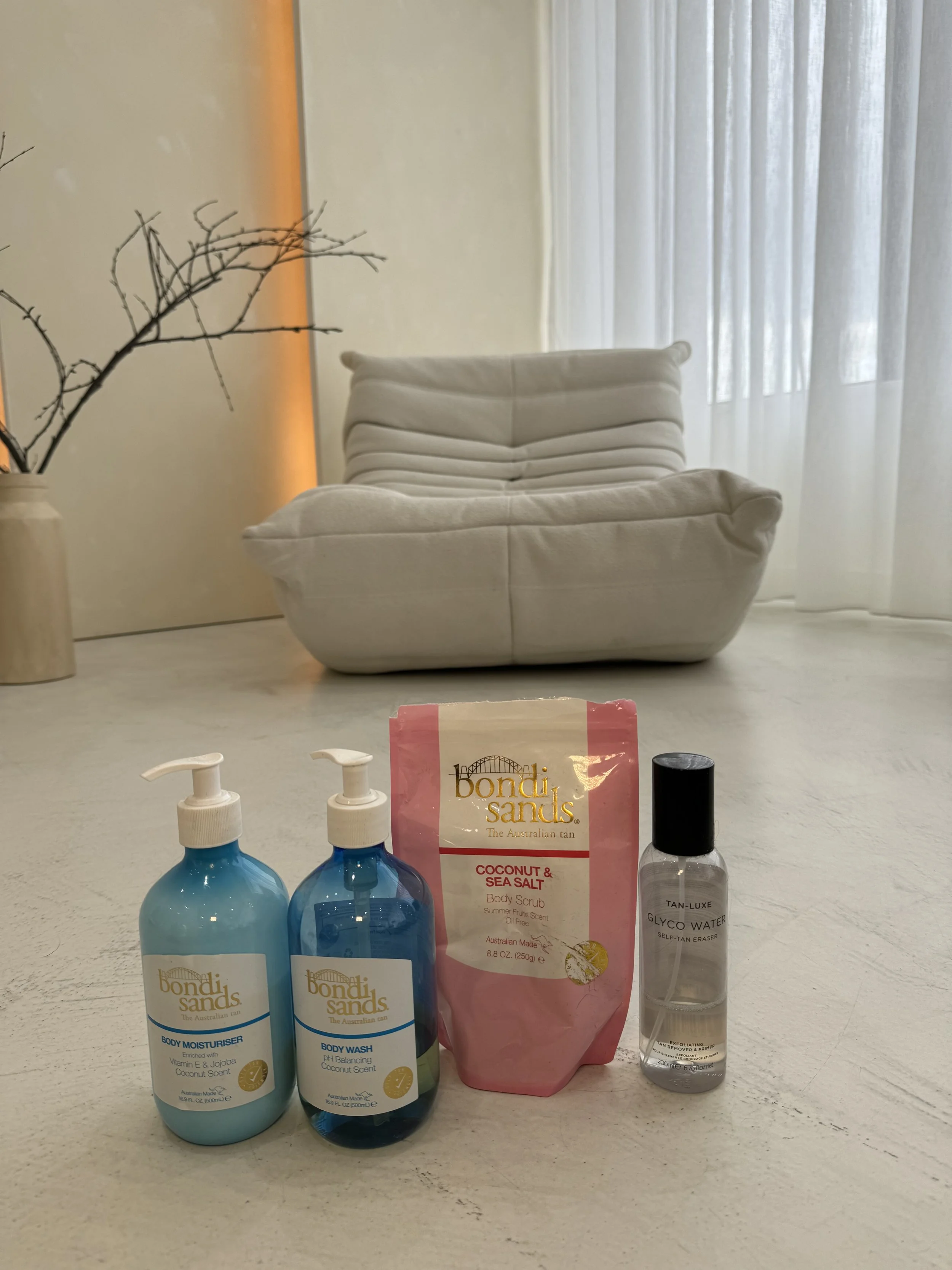 The products you use before and after your spray tan play a huge role in both the outcome and the longevity of your tan. Using the right prep and aftercare will help your tan develop for the best results, last longer, and fade beautifully. Below are our top product recommendations and when to use them – so you can get the very best results every time.